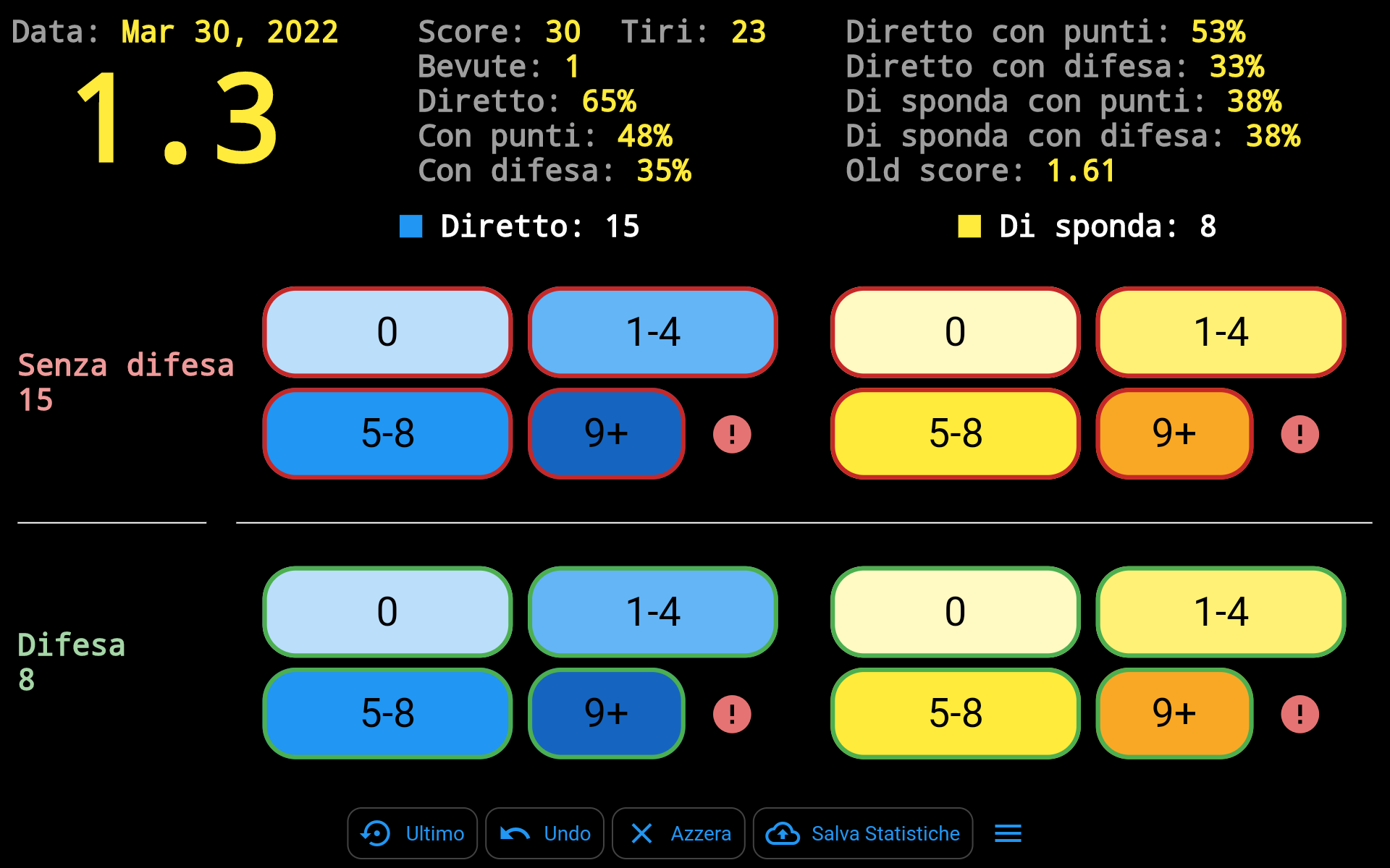 Alternativamente, questa modalita’ puo’ essere utilizzata durante una gara di gioco per mantenere le proprie statistiche sui tiri effettuati.